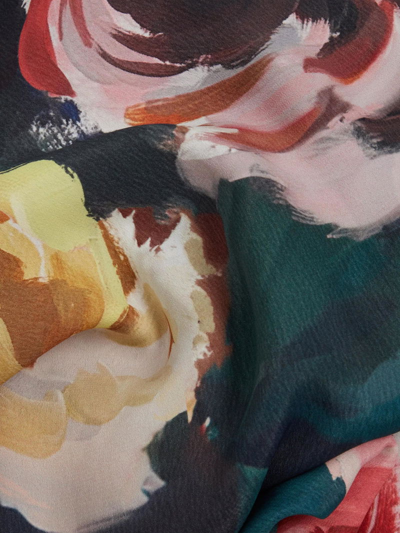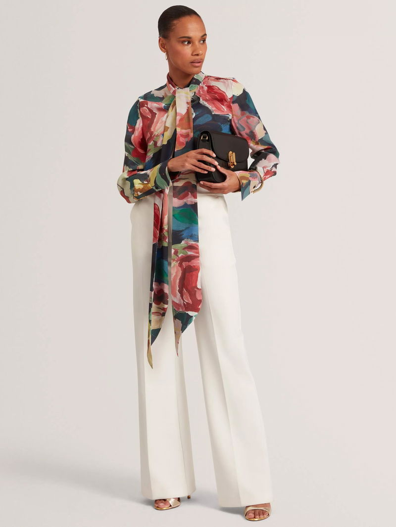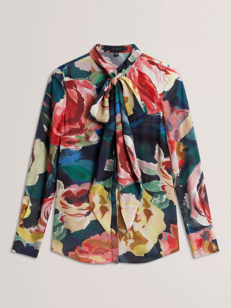 This blouse turns heads with its distinctive floral print and a playful tie neck detail. Soft viscose offers lasting comfort, while the clever design lets you style it your way, easily dressed up or down for any day.