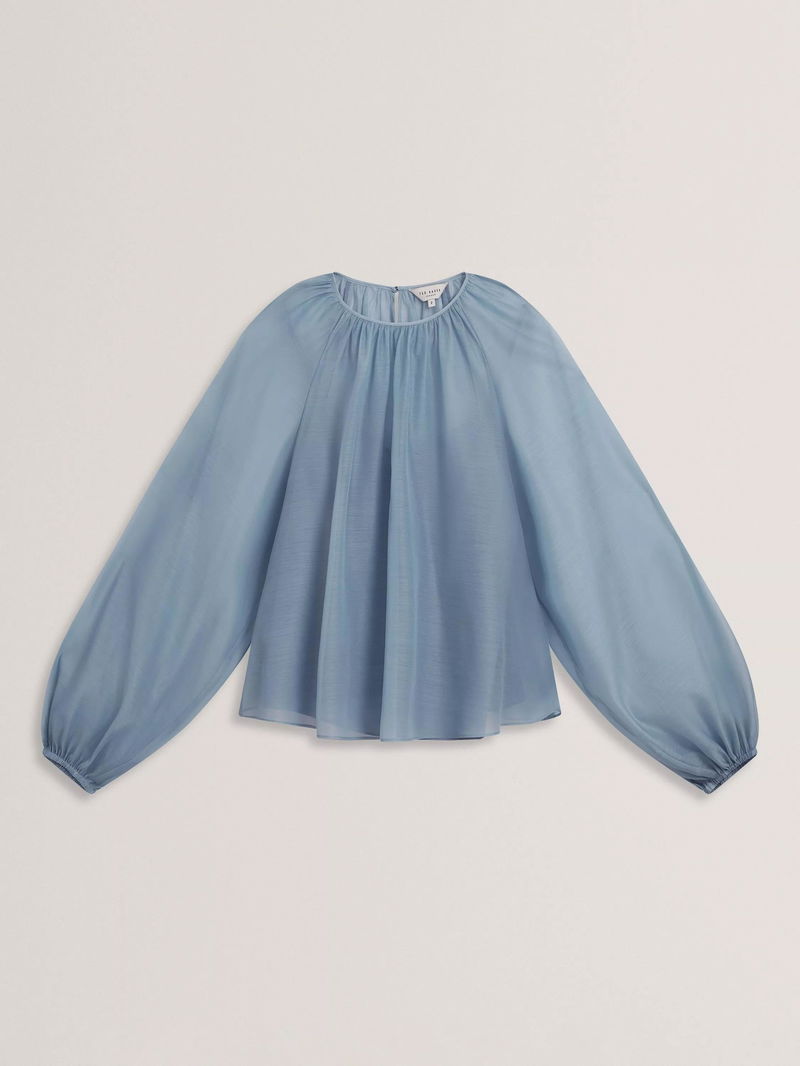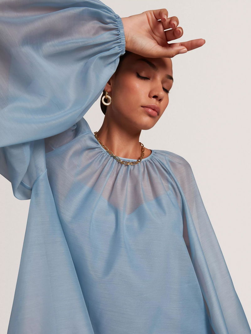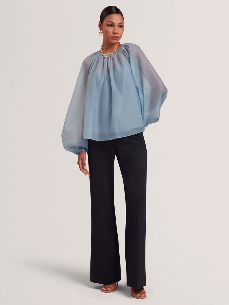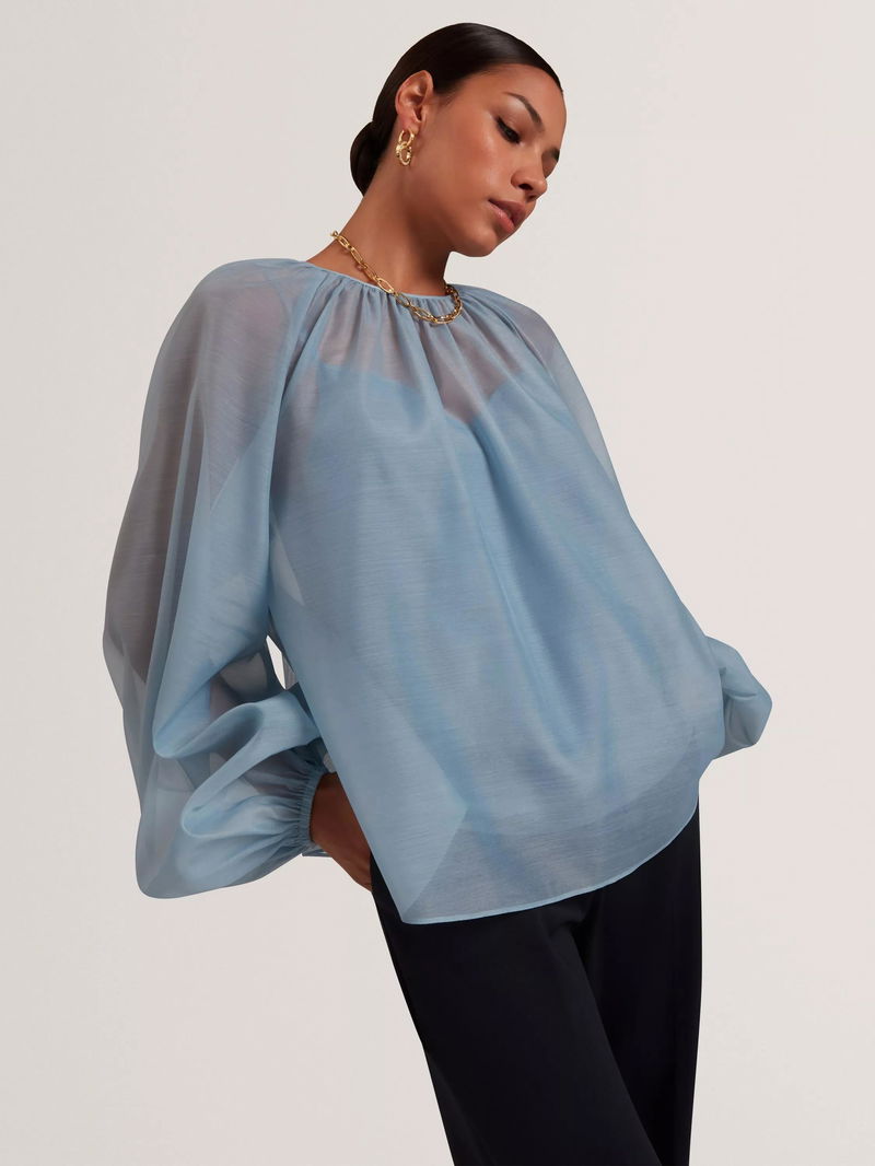 Eelana Organza Puff Sleeve Blouse, Light Blue