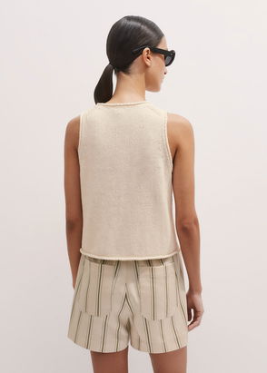 Cut with a softly rounded neckline and elbow length sleeves, it is made with soft, lightly knitted fabric. Pair effortlessly with floaty summery skirts for warm days spent with good friends.