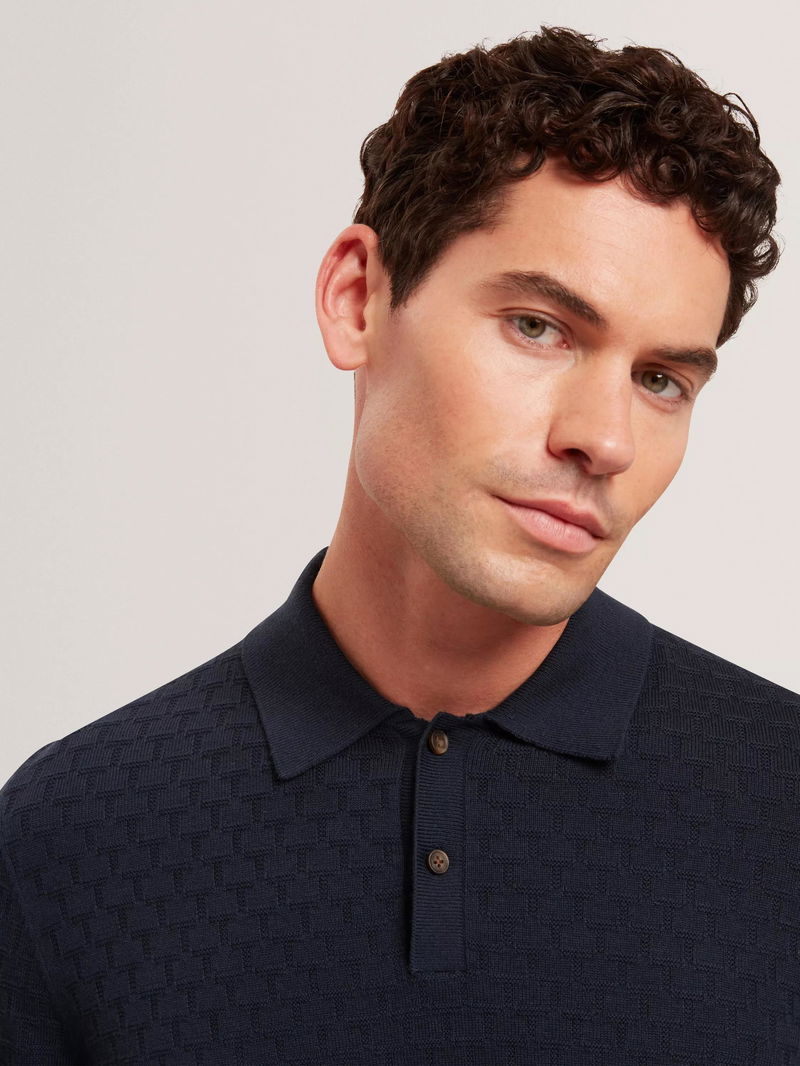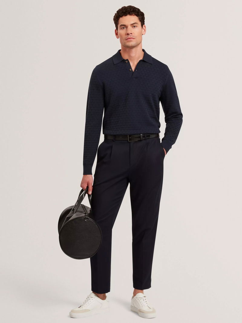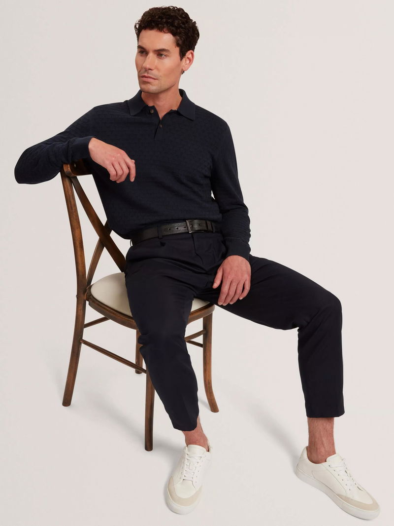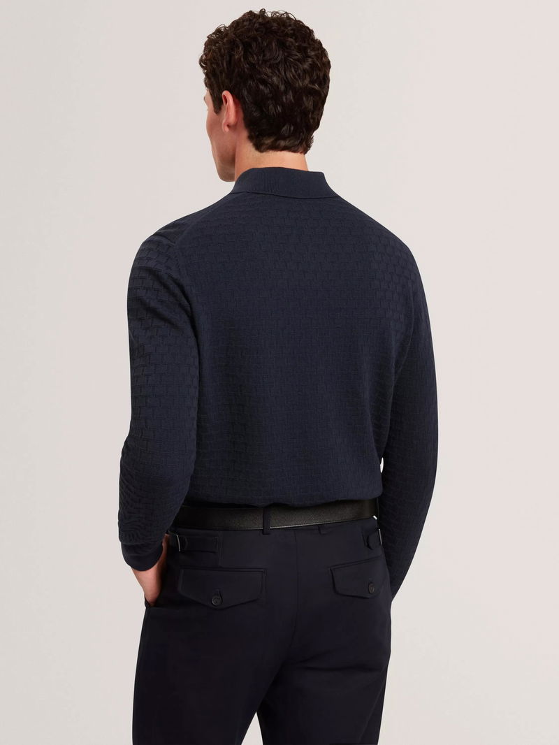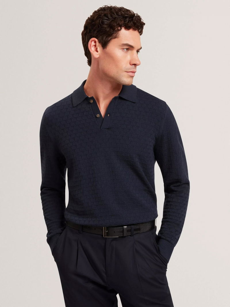 This fine knit jumper features a smart polo collar and textured design for a clever twist on classic comfort. Breathable and soft, it pairs easily with your favourites, giving you warmth and style for work or weekend plans.