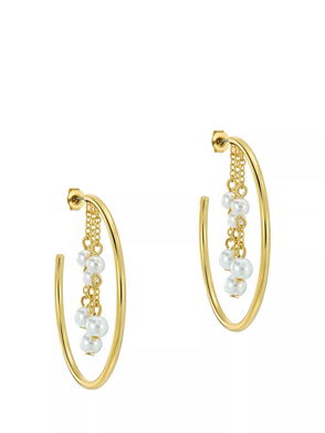 These women's double hoop earrings feature two hoops in one for an illusion silhouette. One hoop features a row of sparkling crystals, while the other hoop showcases Ted Baker branding laser engraved. Crafted with precision, they offer a delicate fusion of crystals and gold-tone plating.