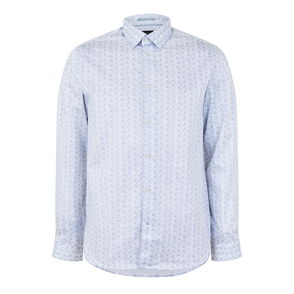 Description: In a slim fit, soft blue micro dot design with a semi cutaway collar. A contrast grosgrain back neck tape and signature Ted Baker embroidery on inner placket.