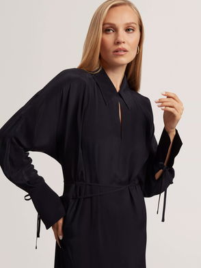 Framed with a v-neckline and long sleeves, it is a care-free option for daytime dressing.