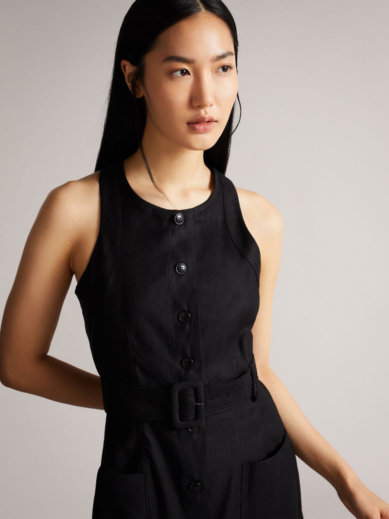 With a traditional round neckline and a sleeveless design, it is cut from a light linen blend that offers cool and breathable comfort and brings a summer vibe to your daytime collection.