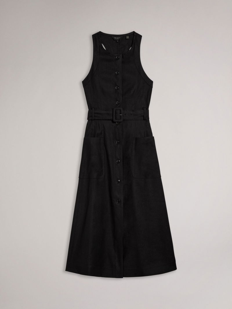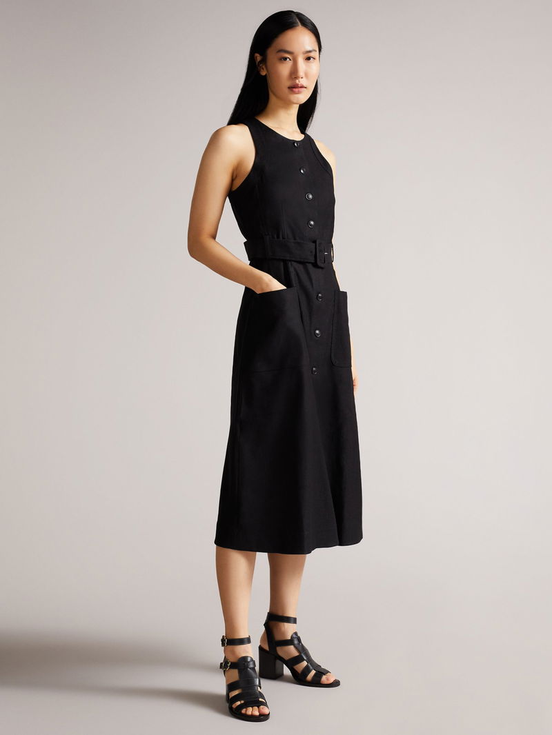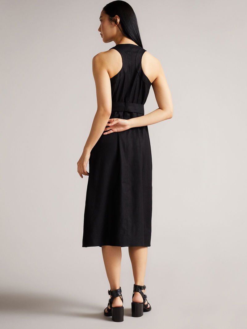 In an A-line silhouette, this midi dress by Ted Baker complements bold accessories with its plain canvas.