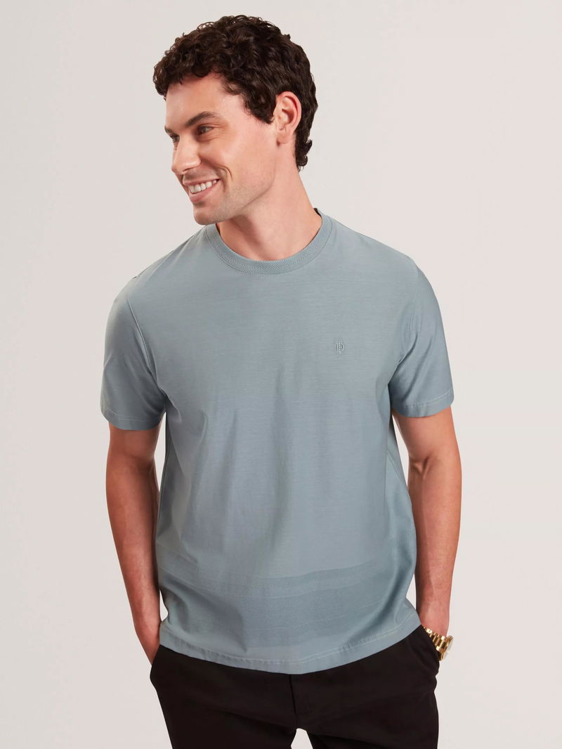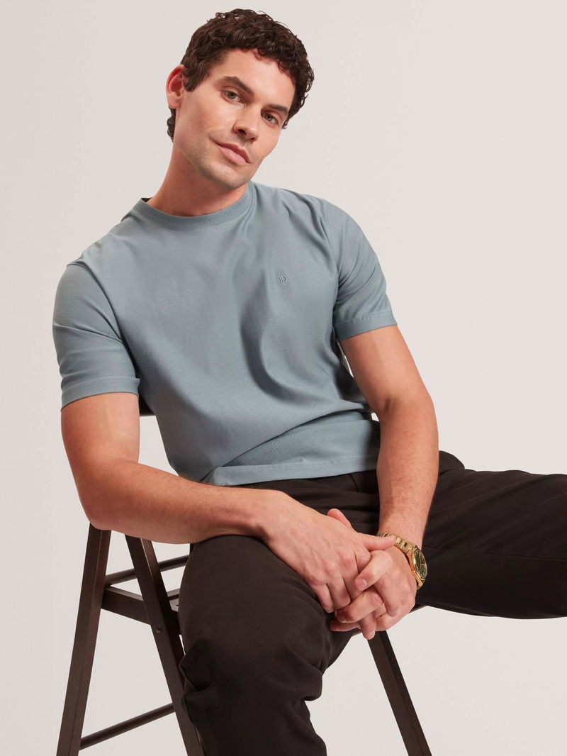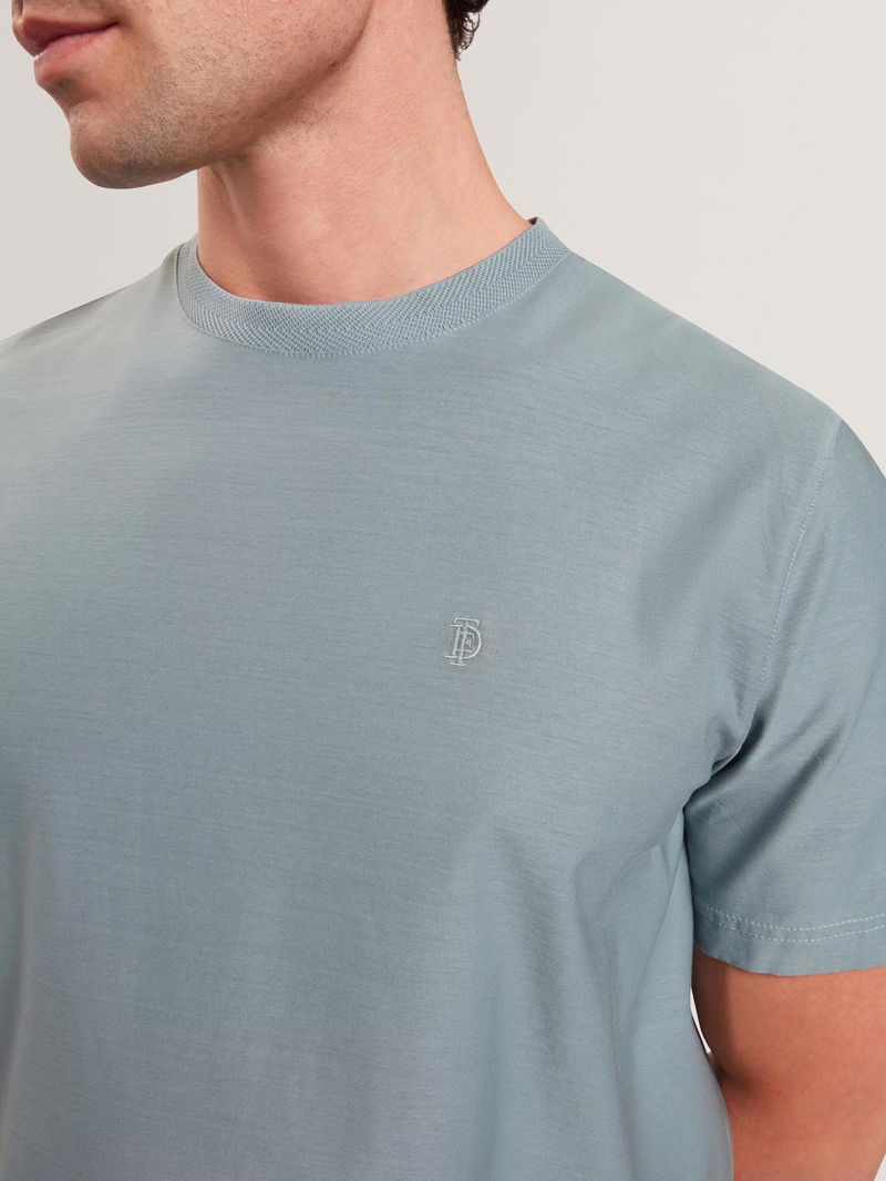 Kaelith Crew Neck Cotton T-Shirt, Teal-blue