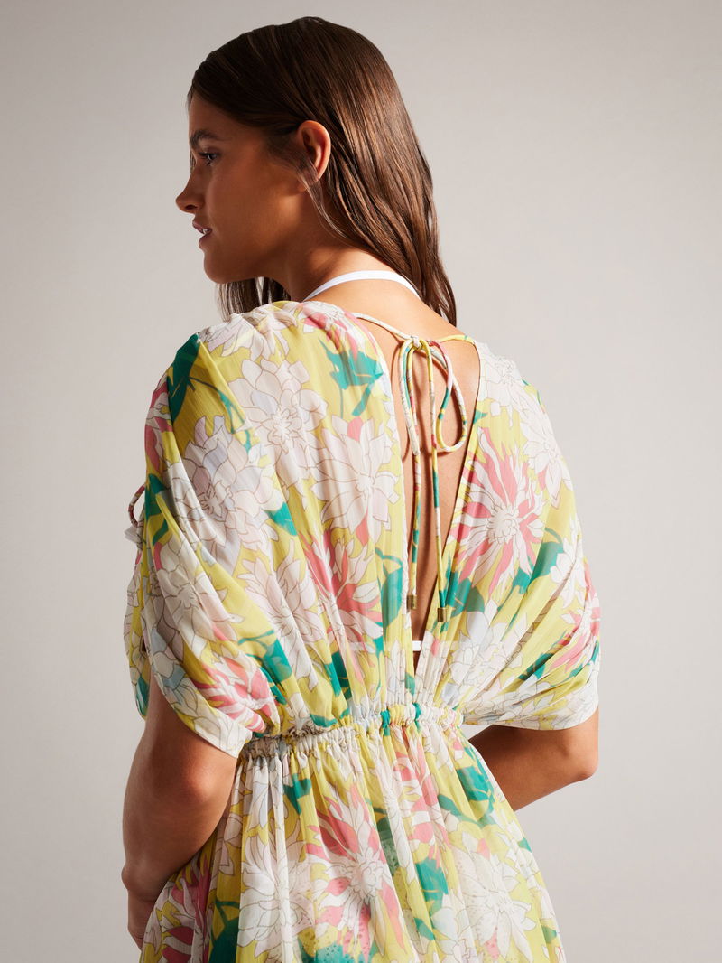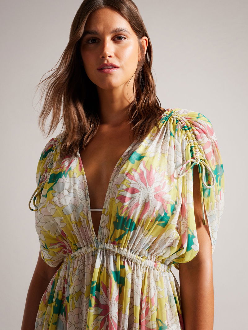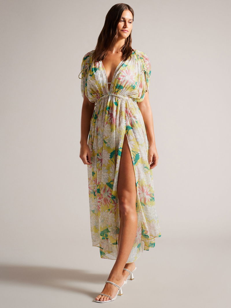 Cut to a maxi length with on-trend slit detailing, this beach cover up is adorned with a charming floral pattern.