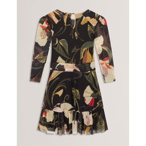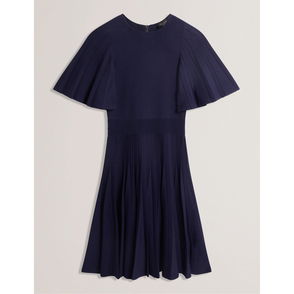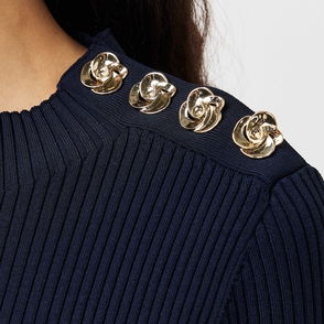 Celebrating the fit-and-flare effect with a cinched waist and voluminous skirt, this mini dress from Ted Baker is made from softly rib knit viscose blend. Topped with a round neck and elbow length sleeves, this style features decorative gold-toned buttons to one shoulder.