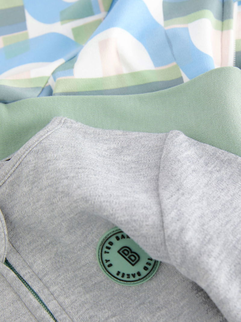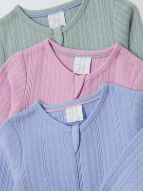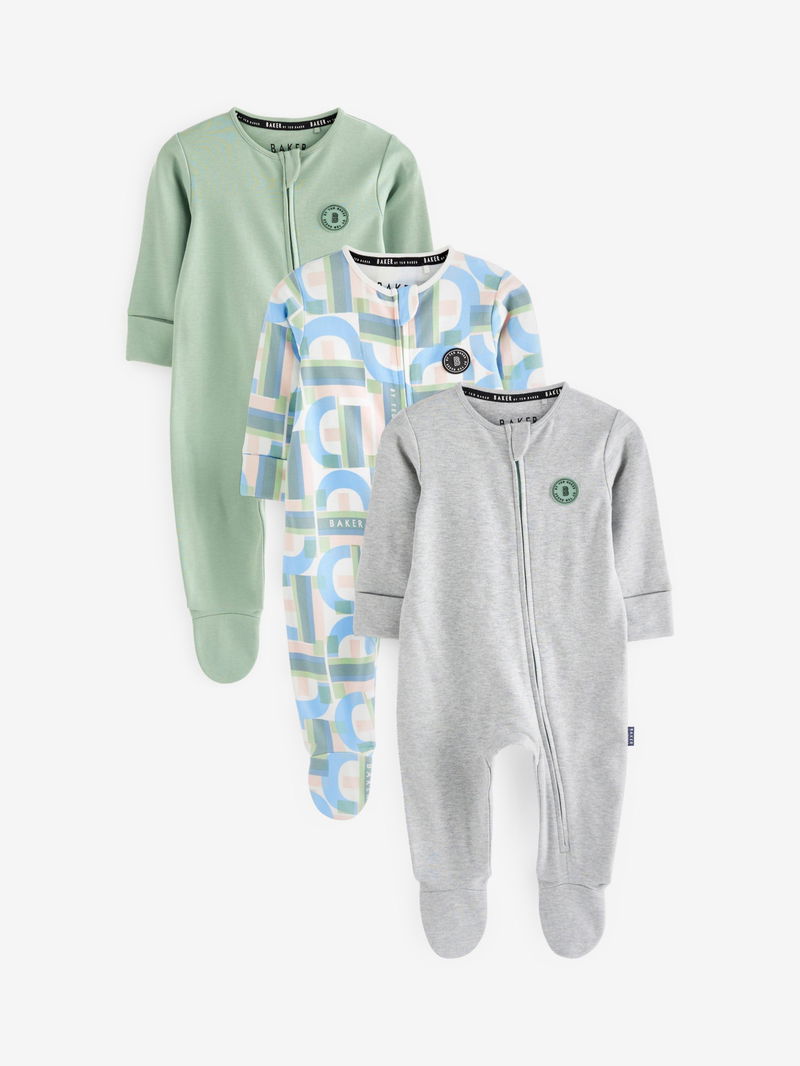 Take care of bedtime with this three pack of soft and breathable cotton sleepsuits. With a zip fastening for easy dressing. Sizes from 12-18 months are designed without feet. Finished with Ted Baker branding.