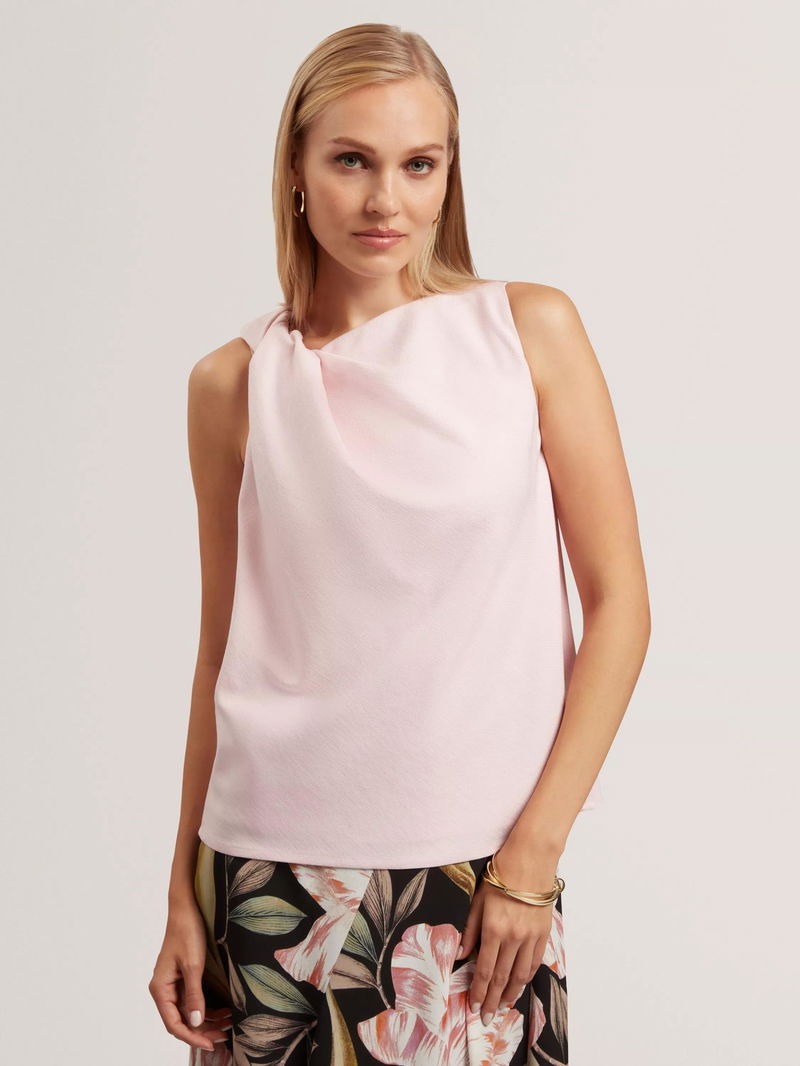 A sleeveless top by Ted Baker. With a cowl neck featuring a flattering twist detail, the plain colour is designed to go with anything. One for your everyday lineup.