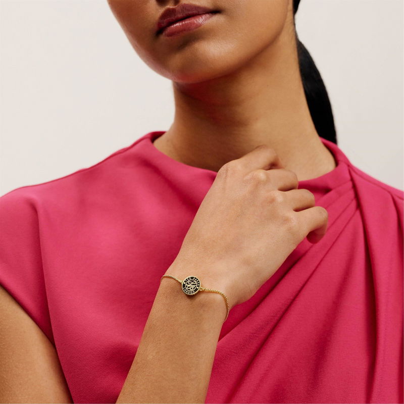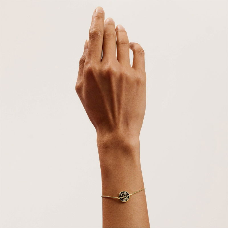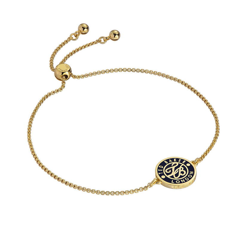 Spell out your style with Ted Baker s Monelle Monogram Button Adjustable Bracelet. A bespoke black metal disc paired with gold-tone plating creates the perfect contrast. Choose your perfect fit with the sliding adjuster.