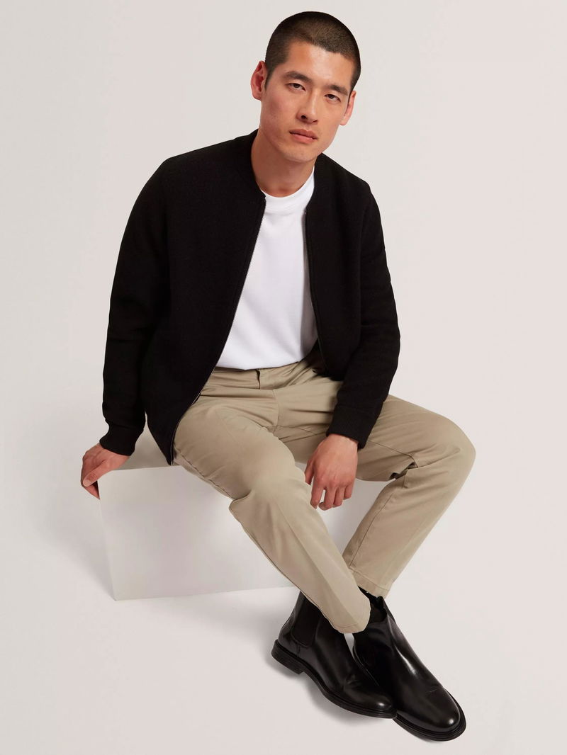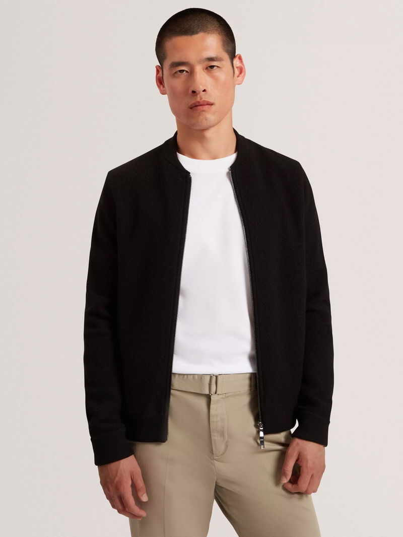 This regular fit merino wool bomber jacket keeps you comfortable all day. Its zip fastening and long sleeves offer effortless style for any casual occasion, letting you focus on what matters most while looking sharp and feeling good.
