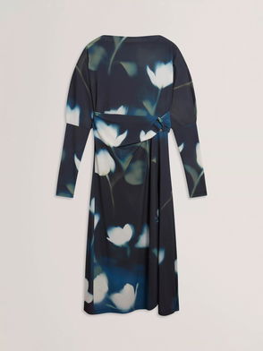 Simple but stylish, this midi dress by Ted Baker is a muted, yet chic addition to your repertoire. Framed with a flattering asymmetric neckline and a twist waist detail, it is cut from soft satin giving it a luxurious feel and is perfect for evenings out.