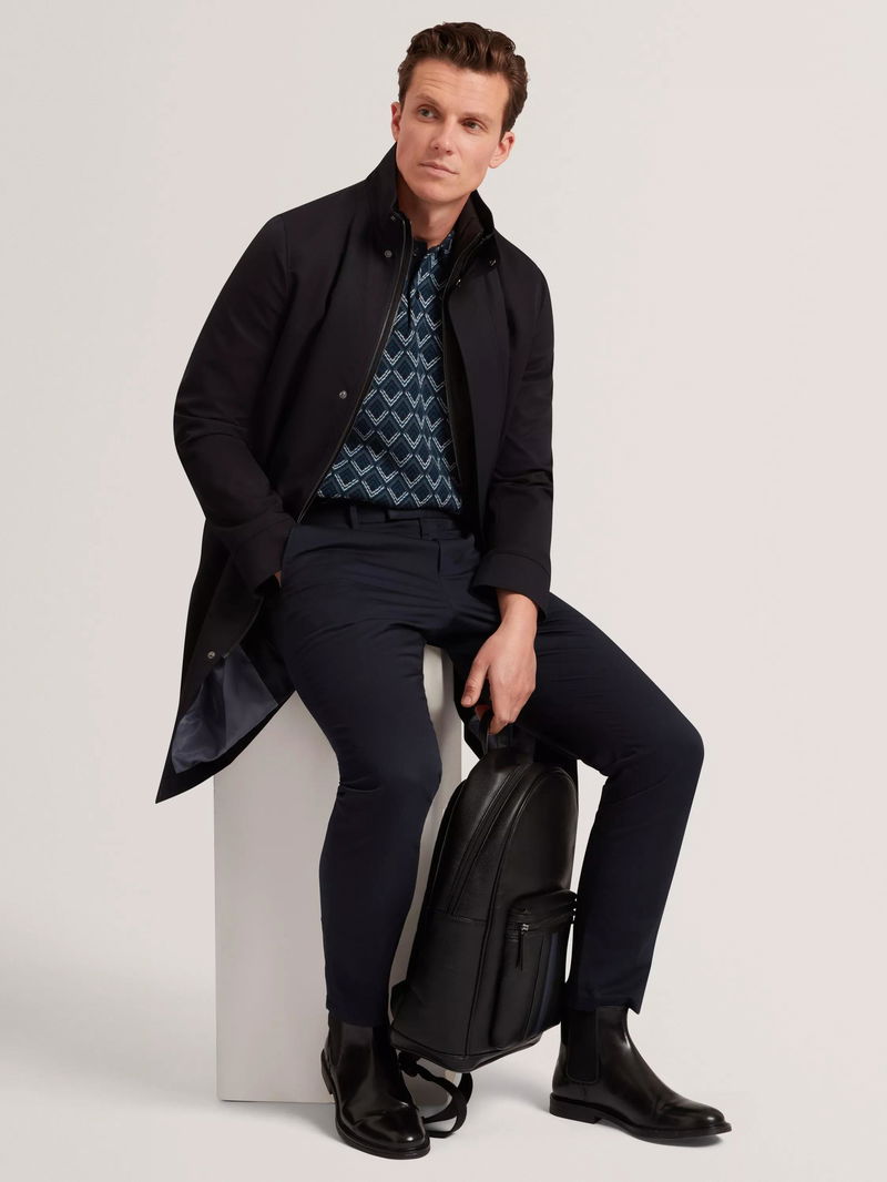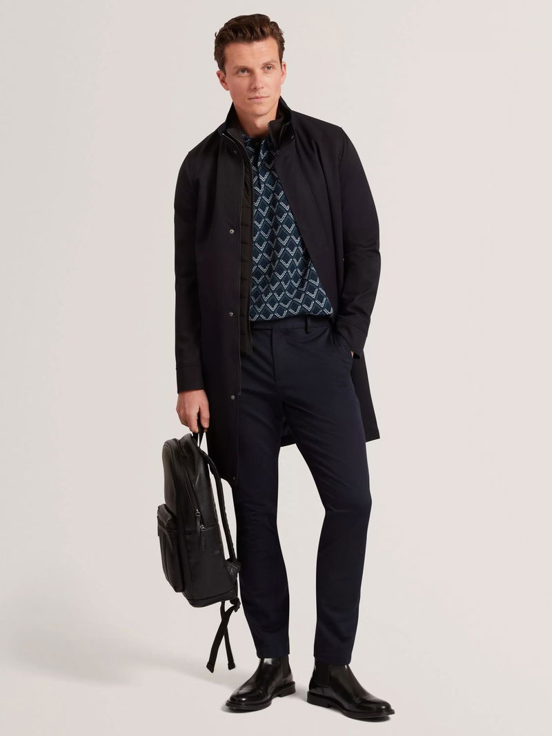 An funnel neck overcoat from Ted Baker with a mock liner. Its regular fit keeps you comfortable for day-to-day adventures, while practical fastenings ensure swift dressing. Add a smart twist to your casual wardrobe and enjoy effortless versatility every time you wear it.