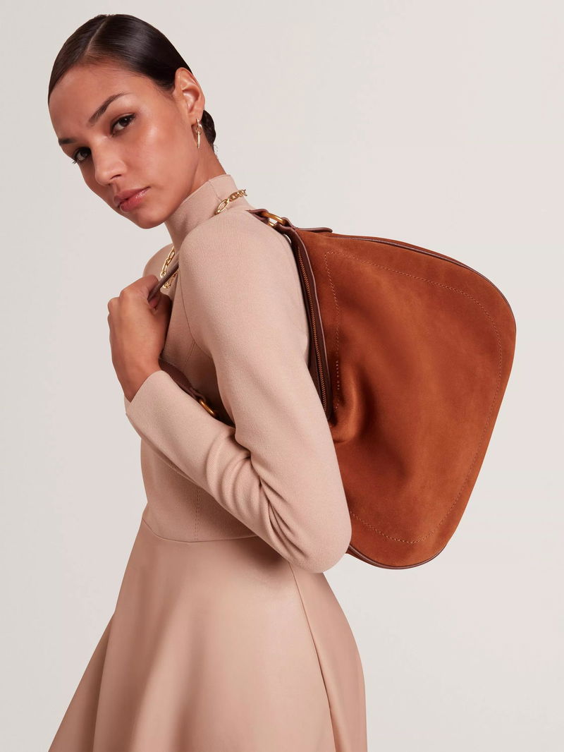 A laidback hobo style bag by Ted Baker. Its soft, textured suede leather and clever zip fastening keep your essentials secure and easy to reach.