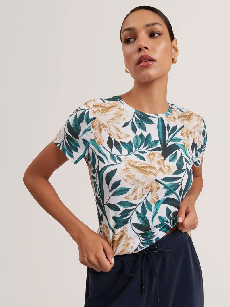 The Selley brings fresh energy to the everyday tee. With a fitted cut, classic crew neckline, and a bold botanical print, it's an easy way to add statement style to your staples.