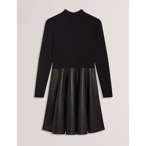 Bright pink sleeveless skater dress - Ribbed cross-over at centre front - Gold zip down centre back to secure - Thick knit effect and super stretchy.