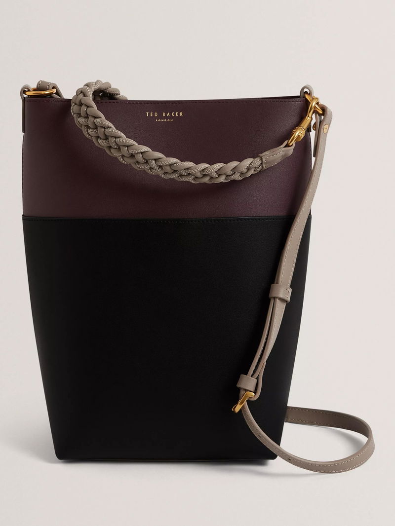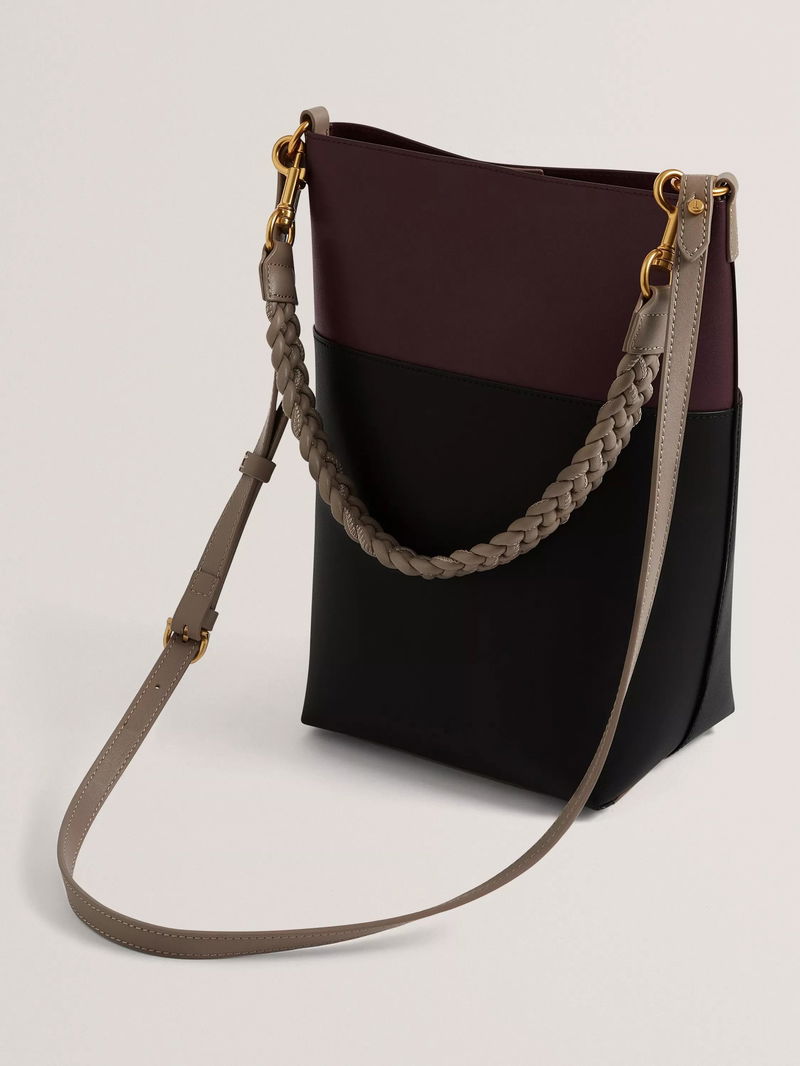 This leather colour block tote keeps your essentials close, pairing a smart magnetic closure with a woven handle and roomy interior. Made from pure leather, it adapts easily to whatever your day brings, making organisation effortless.