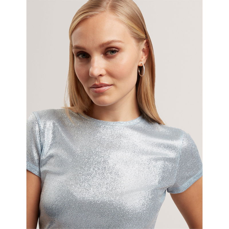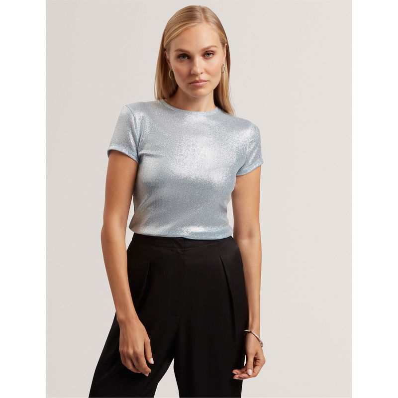 Women's Metallic Short Sleeve Slim Fit T-Shirt