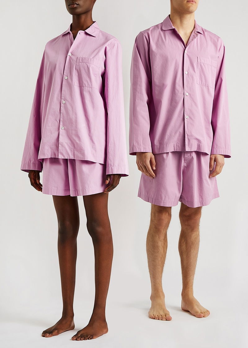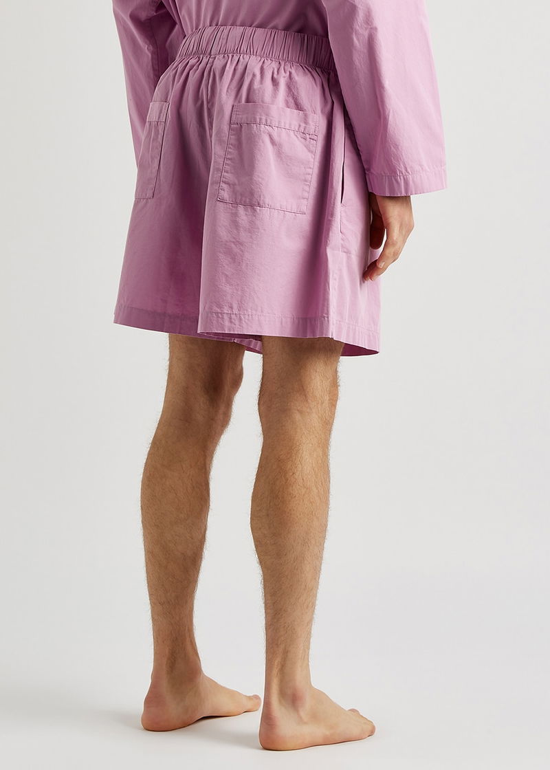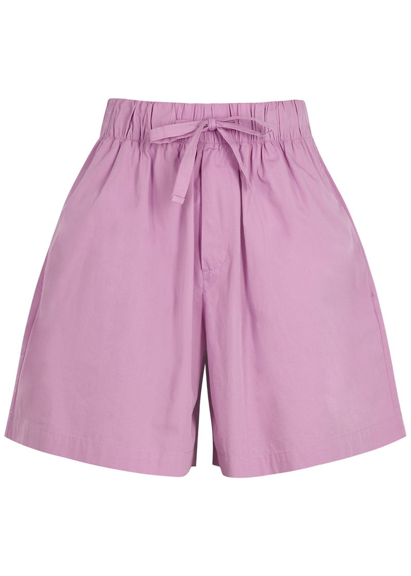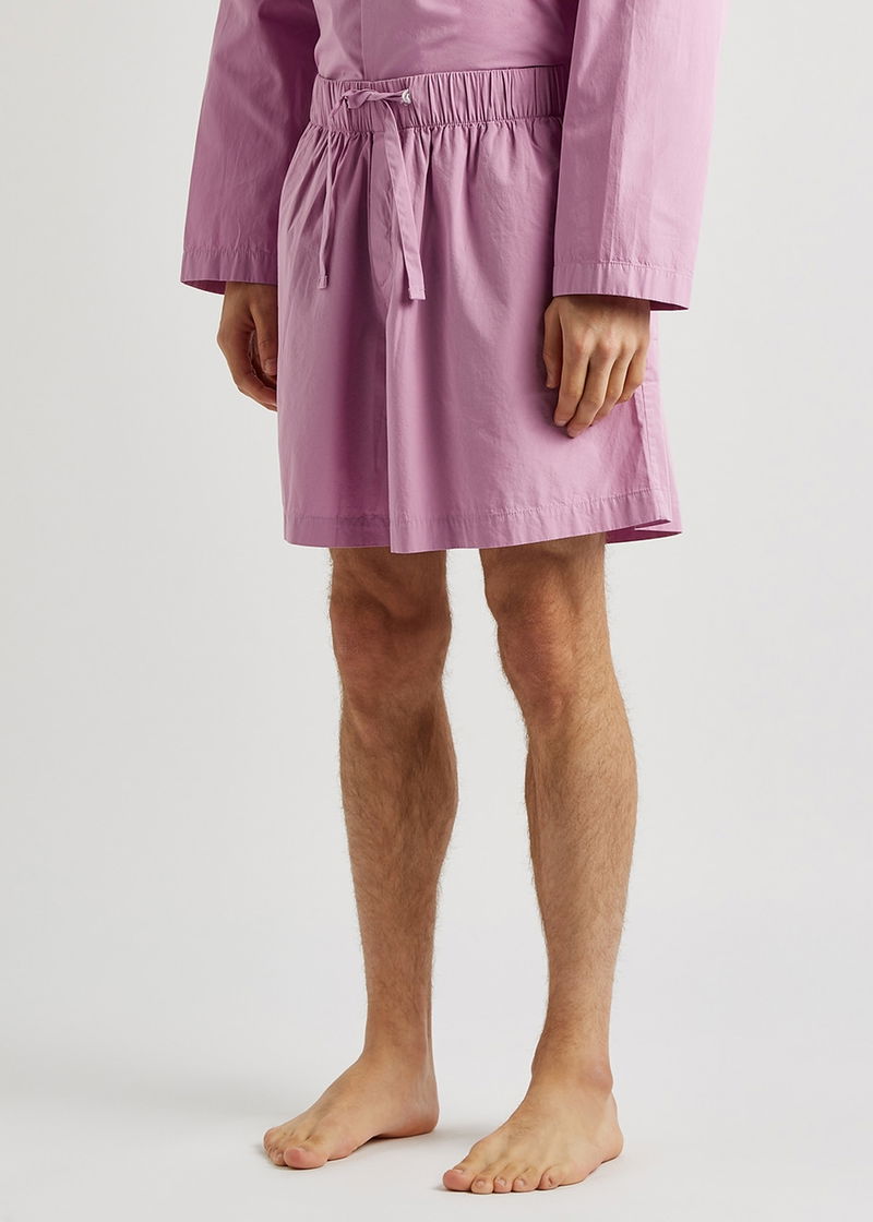 Tekla cotton-poplin pyjama shorts. Elasticated drawstring waist concealed button-fastening fly two side slip pockets two back patch pockets. Pull on.