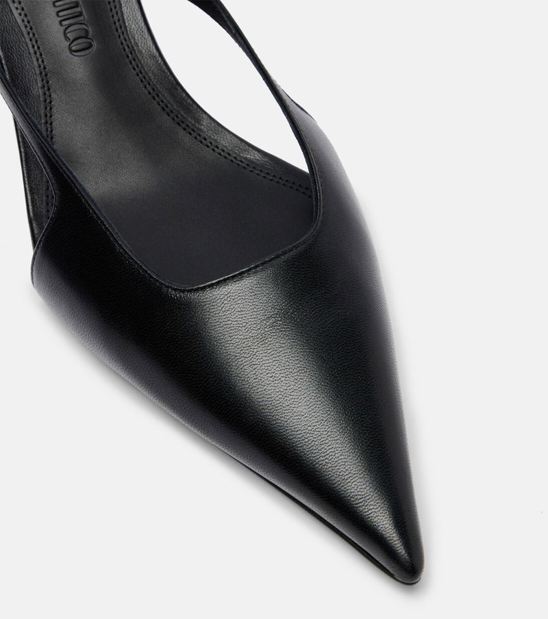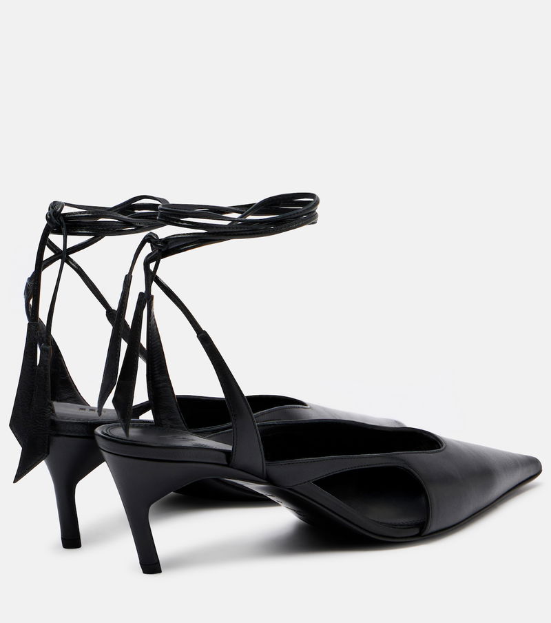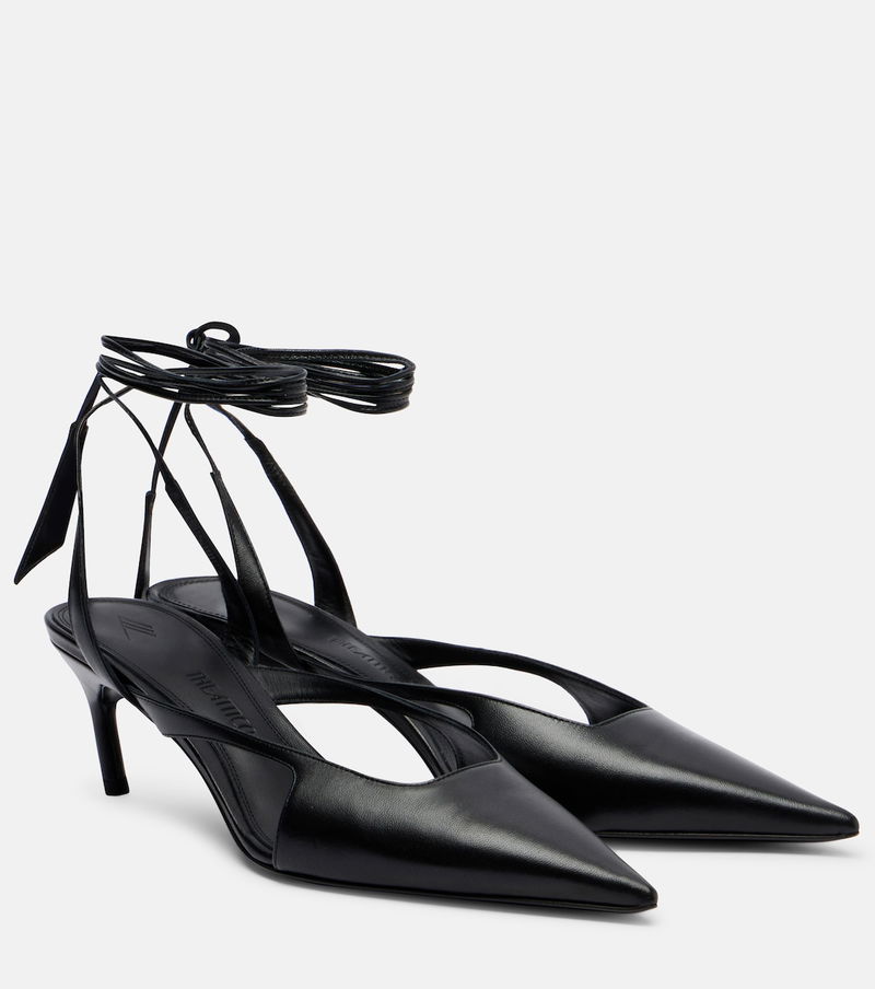 The Attico’s message is simple – it’s time to dress up. The Diane leather slingback pumps sit atop 55mm kitten heels and feature self-ties that elegantly wrap around the legs.