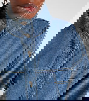 The Attico gives the classic denim jacket a contemporary refresh with this design. The style features distressed detailing, large shoulder epaulettes, and concealed button front that spreads outward at the hem.