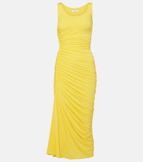 Asymmetric Gathered Jersey Midi Dress
