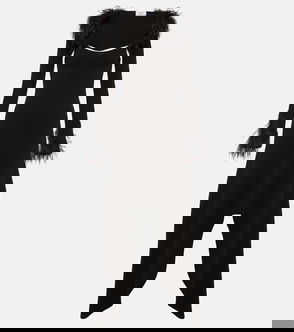 Feather-trimmed Jersey Midi Dress