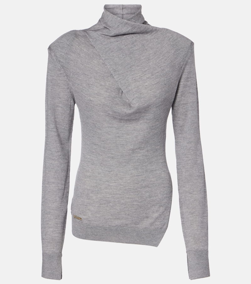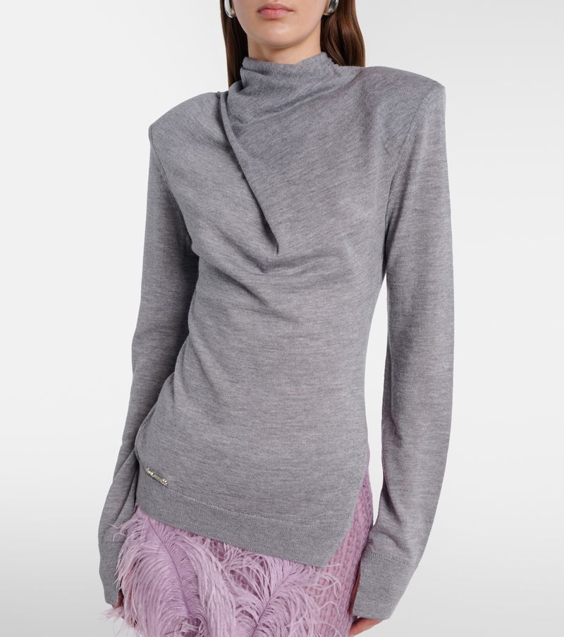 The Attico’s message is simple – it’s time to dress up. Crafted from virgin wool, this turtleneck sweater features a charming asymmetrical hem and wrapped neckline.