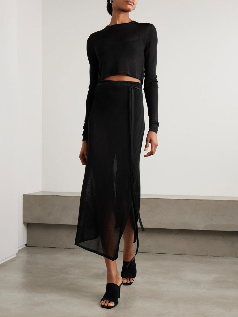 The Frankie Shop's 'Alsen' skirt is both elegant and so effortless. Knitted for a slightly sheer handle, it has a straight, wrap profile that secures with long ties. Style yours with kitten heels and the coordinating 'Kazel' top.
