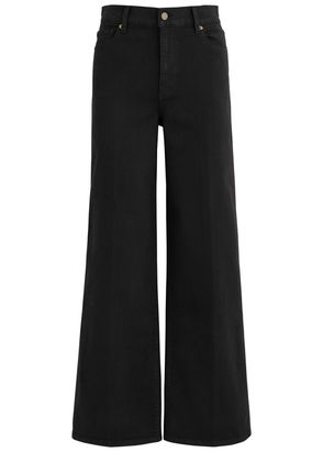 Wide-leg non-stretch denim cargo-style jeans.· Belt loops· Four-pocket styling· Zip-fly· Bellows pockets at front and outseams· Bungee-style drawstring at cuffs.