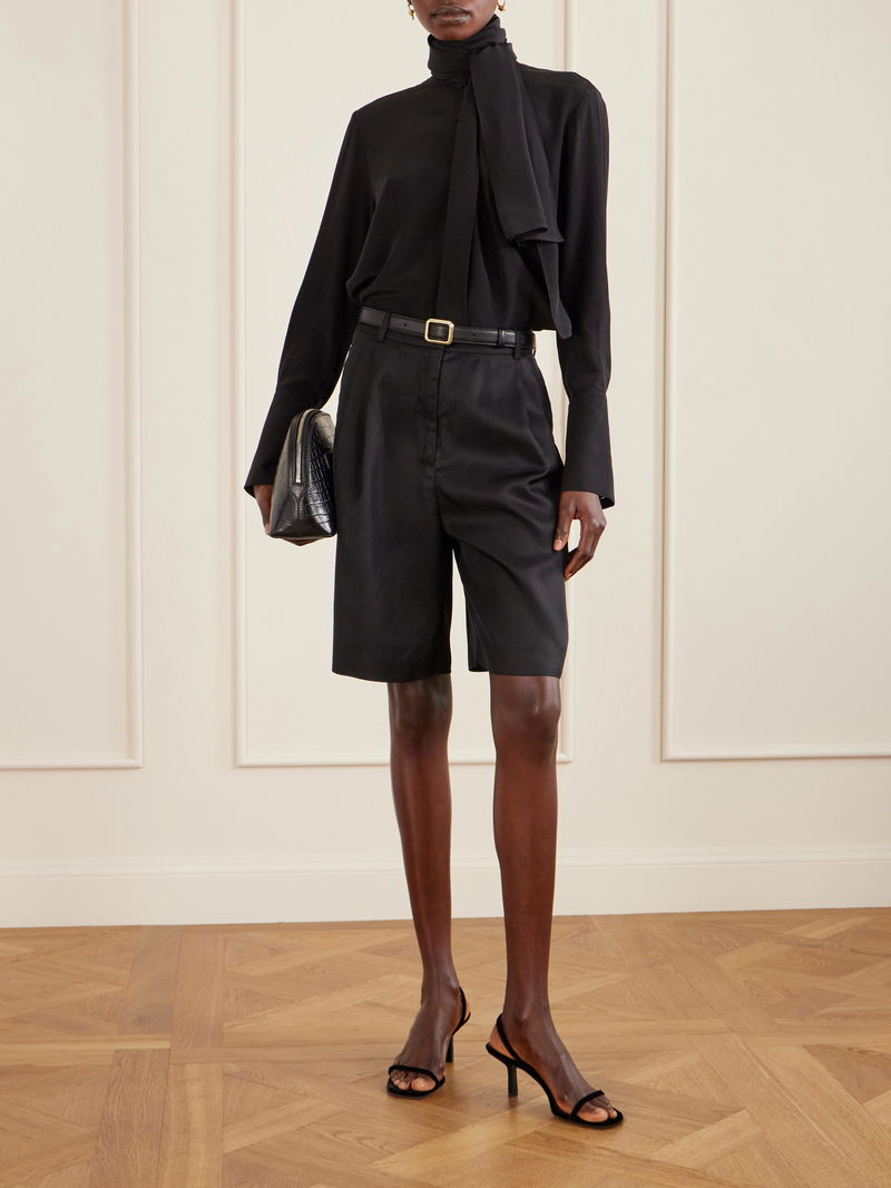 THE FRANKIE SHOP's 'Marfa' Bermuda shorts have a wide, knee-grazing cut. They're made from fluid twill with pleats fanning out their shape.