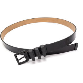 Imitating the worn-effect style of vintage models, this thin women's belt features an aged-effect, silver metal buckle. The black calfskin band makes it easy to team up with a number of go-to items from your wardrobe. Try threading this leather belt through the belt loops of your ripped jeans, or wrap it around a long floaty dress to bring out your waist. Contains non-textile part of animal origins.