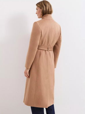 With this warm wool coat, add a timeless classic to your wardrobe this season. Its camel colour gives a warm feel, made even warmer with its long, slightly loose fit. Its double-sided wool composition means you can face the cold winter weather, while the matching belt accentuates your waist. An Autumn/Winter staple, this long coat pairs perfectly with a long-sleeve polo shirt and tailored trousers.