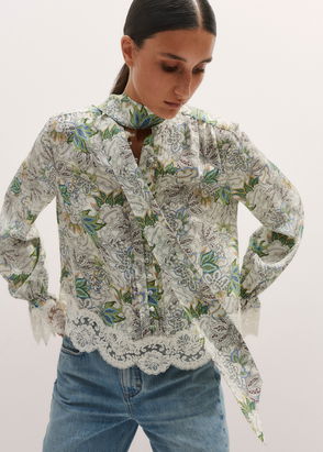 This black top has a very original burnt out texture that accentuates its contrasting printed motif. With its loose fit, long sleeves and small pussy bow that ties together at the front, this piece embodies the retro inspiration behind the brand's new collection. Its vintage charm is further emphasised by the navy blue polka dots all over. You can wear this women’s top as part of an everyday look with plain raw jeans, a zipped jacket and white trainers.