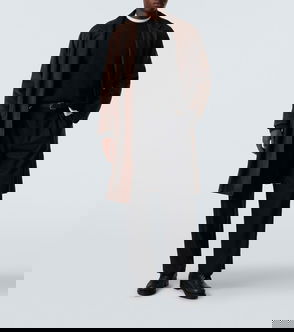With its tartan-effect motif all the way down, this oversized printed coat is inspired by traditional British styles. Made from a blend of wool and cotton, it’s loose fitting and features raglan sleeves and a classic collar. It fastens by way of a tone-on-tone button placket down the front and features tabs on the cuffs. For an elegant outfit, wear this loose-fitting coat over a plain sweatshirt and wool suit trousers.