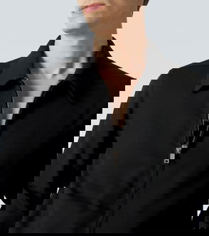 This black wool jacket with check motif by The Kooples combines comfort and elegance. Made from warm, high-quality wool fabric, this item features a classic collar and button fastening down the middle, making it perfect year round. The authentic, buttoned flap pockets on the chest give this jacket from our new collection a practical touch.