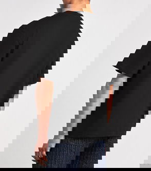 Reflecting the style of our summer collection, this black cotton T-shirt boasts bold colour contrasts. In keeping with traditional sportswear, it features short sleeves and a crew neck with matching ribbed edging. Radiant tropical flowers—accompanied by our signature brand logo—brighten up the dark background. Flaunt this T-shirt with beige cargo trousers, a zipped jacket and heeled boots.