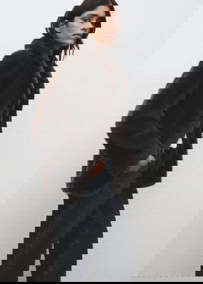 This faux fur winter coat offers a fresh take on a classic women's garment. It has long sleeves, fastens with buttons and the cropped shape is inspired by a jacket. The soft, fluffy material is accentuated by the leopard print all over, while the leather cuffs provide a contrasting touch. Give in to the retro charm of this coat, and wear it with a cashmere sweater, flared jeans and boots.