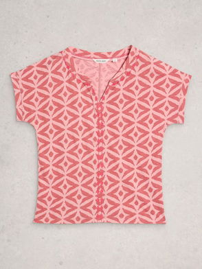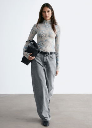 Thanks to its graceful flowing fabric, this printed pink top is perfect for the transition from winter to midseason. The wraparound silhouette with plunging neck accentuates the upper body, while the large frills enhance the short sleeves. It's embellished all over with our new pink floral motif, which will brighten up your more basic outfits. Team this women's top with a short blue denim skirt and a foulard knotted around your neck.