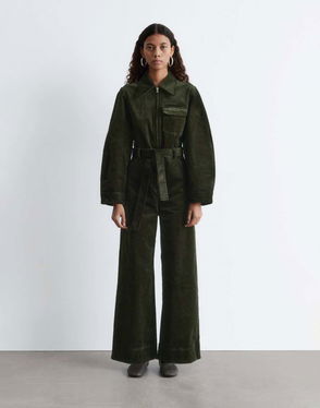 Directly inspired by this season’s utility-wear trend, this flowing khaki jumpsuit is elegant and urban in style. Adjustable thanks to the leather belt around the waist, it also features three quarter-length sleeves and concealed zip fastening. The four flap pockets on either side at the front provide structure. This slim-fit jumpsuit slips on in the blink of an eye: try it with a vintage denim jacket and sandals.