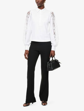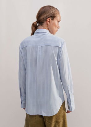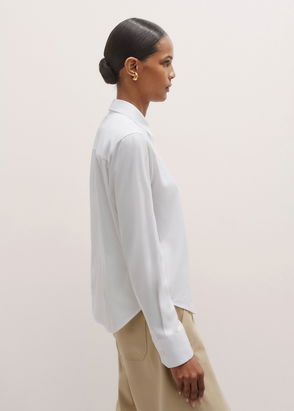 Revisiting this season's masculine-feminine style, this white shirt for women is utterly casual. Made from light fabric, it's loose-fitting, and has short sleeves, a large classic collar and a breast pocket. For a bright touch, the classic resin buttons have been replaced with trendy jewel-effect ones. Bring out the style of this shirt by wearing it with faded blue jeans, a zipped jacket and black ankle boots.