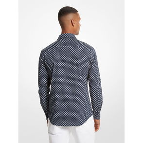 This printed men’s shirt will win you over with its exclusive motif inspired by vintage ‘80s pieces. We’ve created a new monochrome version of the motif, repeated all over It retains the typical features of a classic shirt, including long sleeves with buttoned cuffs, fastening down the middle and a spread collar. You can elevate this chic shirt by wearing it with black urban trousers and leather Chelsea boots.