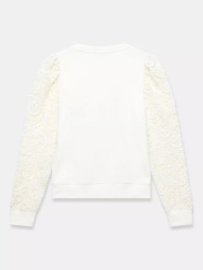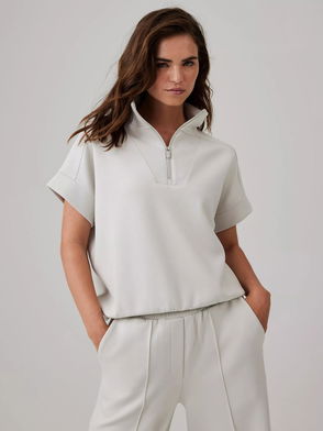 This white crop top captures the casual athleisure style of our new summer collection perfectly. Made from flowing and slightly satiny material, it features a hood that tightens with drawstrings and long sleeves with ribbed cuffs. The two tone-on-tone lace inserts at the shoulders provide a discreet signature touch. Bring out the elegant style of this fitted top by wearing it with a mini A-line skirt, an oversized denim jacket and heeled boots.