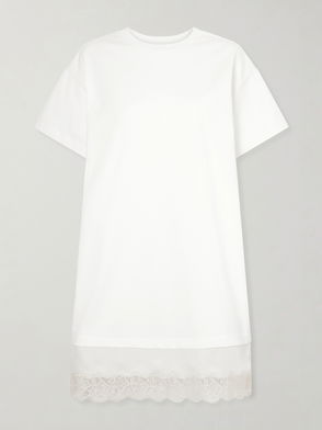 Thanks to its bold patterns, this white skater dress sets itself apart from classic models. Crafted from light, floaty material, it features long puffed sleeves and a scoop V-neck. The matching lace banding, which creates a see-through effect all over, gives the item perfect structure. Try an ultra-modern outfit by teaming this flowing dress with a biker jacket and biker boots to contrast with its innocent, pristine style.