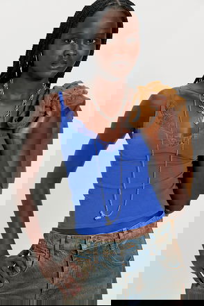 Inspired by fine lingerie, this blue silk camisole with lace from our new collection is simple and refined. It’s straight-cut, slightly loose-fitting and incredibly light. A trendy piece of sleepwear, this silk camisole looks great with high-waist jeans and trendy white trainers for an utterly contemporary sporty-chic outfit.