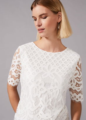 With this ecru lace top made from fine, delicate fabrics, The Kooples offers a touch of fresh feminine style. The subtly playful, see-through, artisan lace fabric is embellished with a frilly panel on the front for a highly elegant, classy feel when worn. For a sophisticated boho-chic outfit with recurring details, team this refined trendy top with a colourful, long frilly skirt from our new collection and high leather boots.