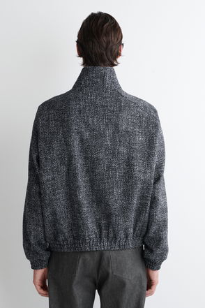 This rock-style wool jacket captures our brand’s bold, free-thinking spirit perfectly. With its long sleeves, classic collar and large, tone-on-tone leather band, it offers a refined shape. A signature feature, the silver zip fastening down the front and at the bottom provides a touch of brightness. Totally versatile, this jacket can be worn with a fine wool sweater, a printed shirt or a casual T-shirt.