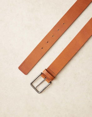 This leather belt by The Kooples offers a fun contrasting material/texture effect. We opted for high-quality, smooth black calfskin—cut thinly—and an adjustable buckle at the front. The dark shade contrasts nicely with the metal inserts at the sides, giving it an elegant style. Wear this men’s belt with wool suit trousers, a shirt and a pair of Oxford shoes.