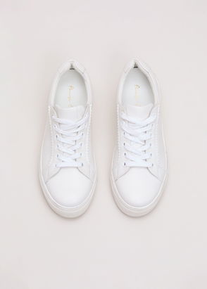 With their trendy details, these white urban sneakers will give your summer looks that streetwear edge. The printed laces at the front and metallic beige inserts set them apart from classic sneakers. Notched and slightly wavy, the thick tone-on-tone sole provides extra height. Break the mold by teaming these sneakers with a long patterned dress and a rock'n'roll biker jacket.